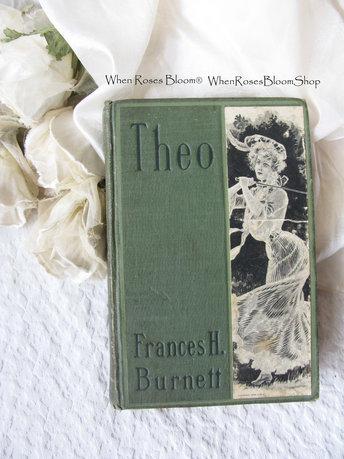 Vintage Book Theo Frances Hodgen Burnett circa 1877 Green Decorative Pretty Lady Cover Rare Booklover Gift Victorian Romance WhenRosesBloom
