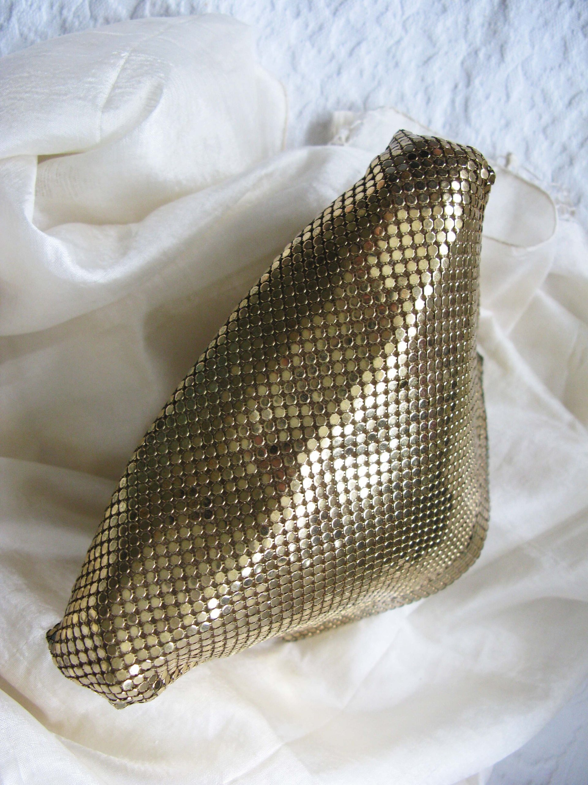 Vintage Whiting Davis Gold Mesh Clutch Purse ...A wonderful elegant evening handbag. Timeless vintage is always in style. Elegant Wedding and Party Accessorty. Such a dressy purse. Circa 1940's-1950's ( see pics, and check shop main page for more info on policies/shipping/etc and ask questions if needed) Also, check out our shop for more items in the WhenRosesBloom collection too.